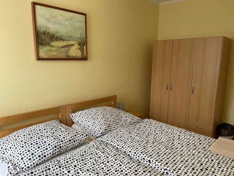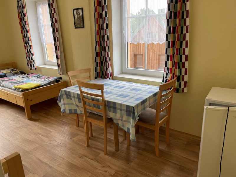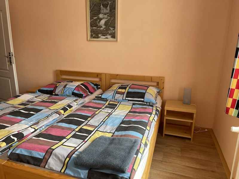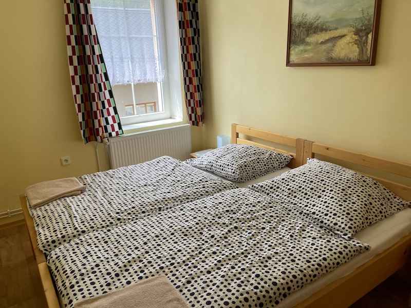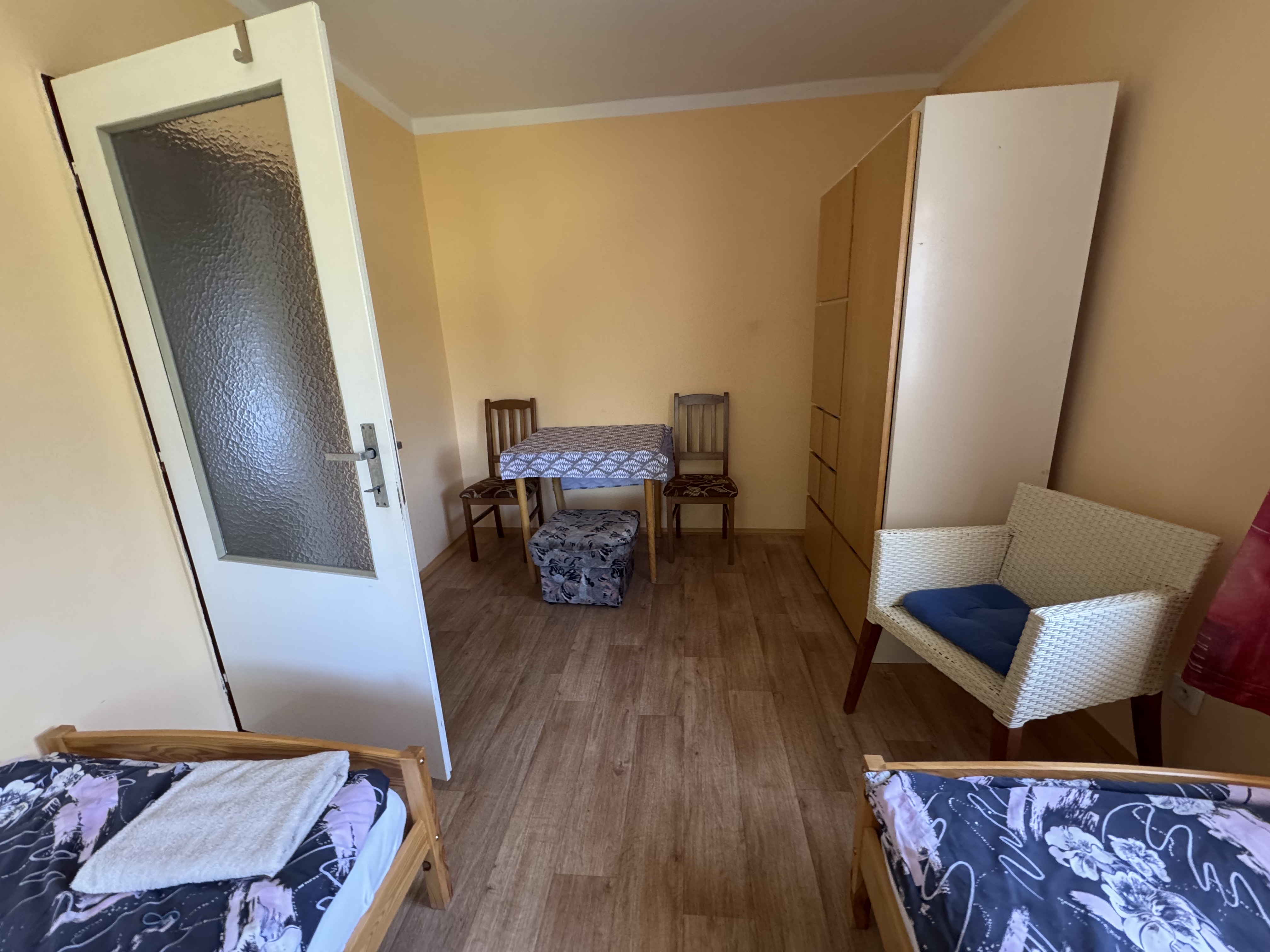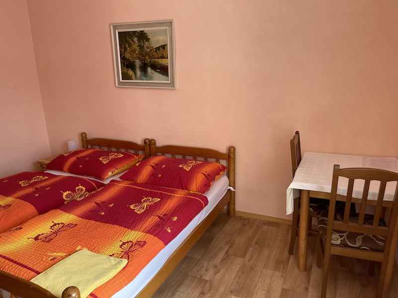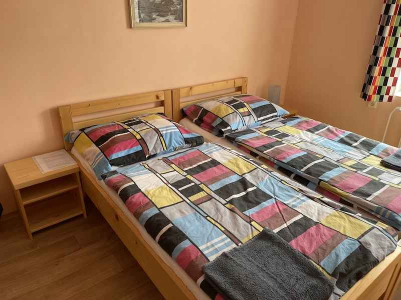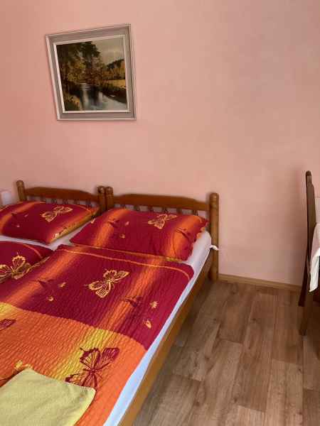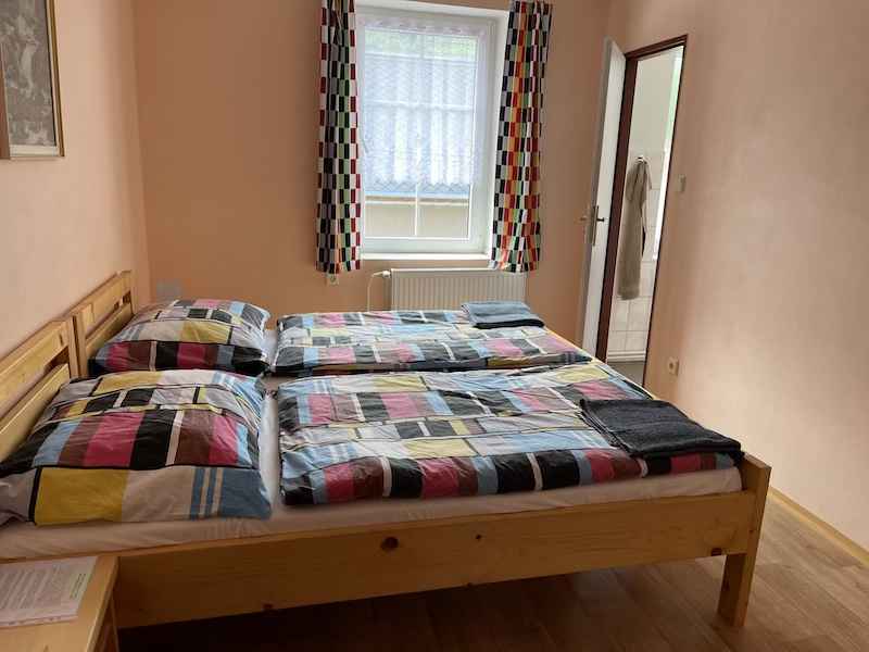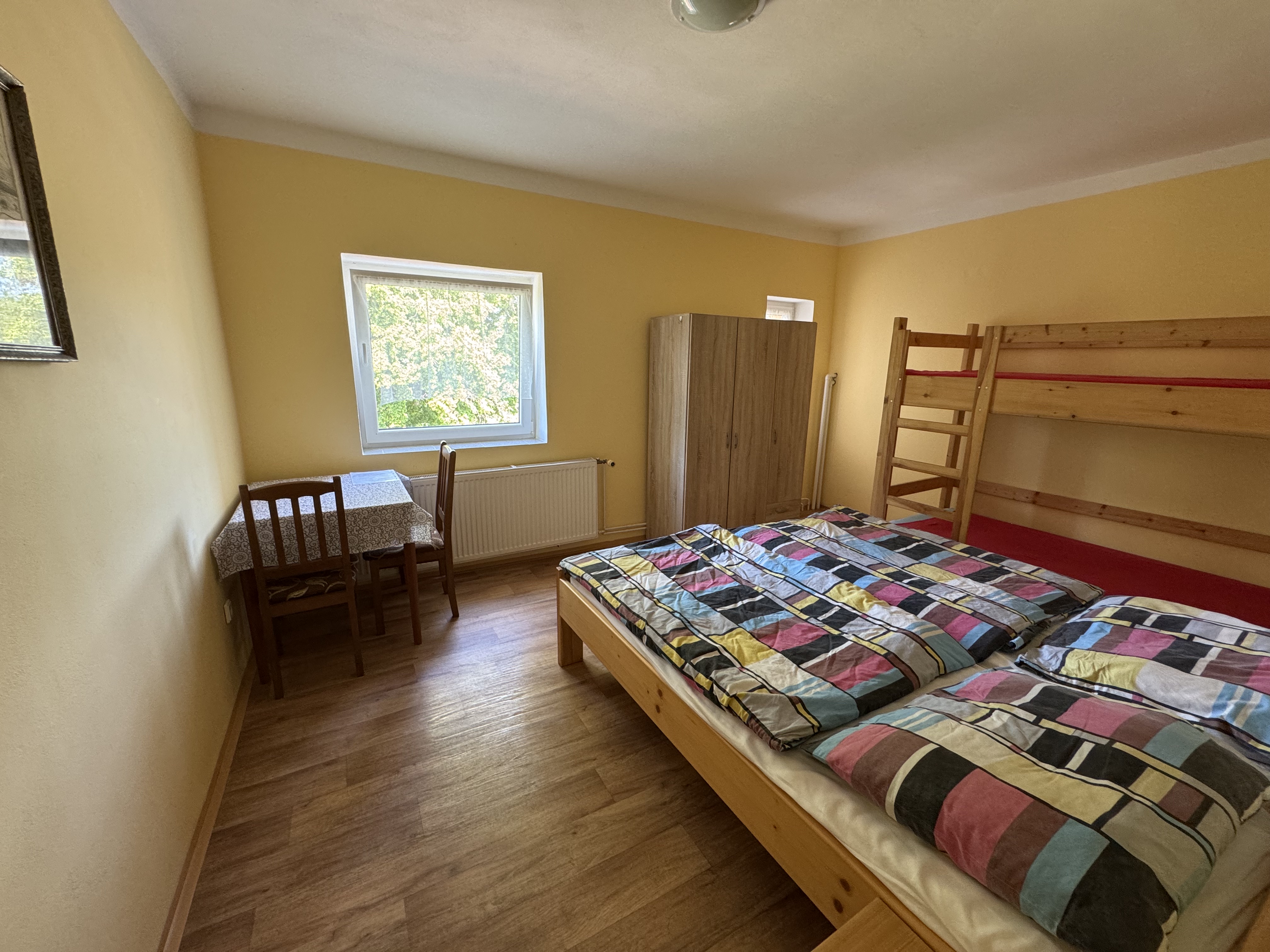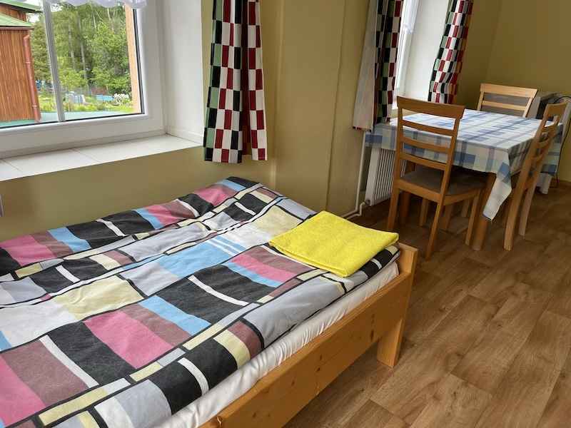 Dvoulůžkový pokoj. Sprchový kout, WC, kuchyňka, skříň. Lednice, varná konvice, elektrický sporák.
