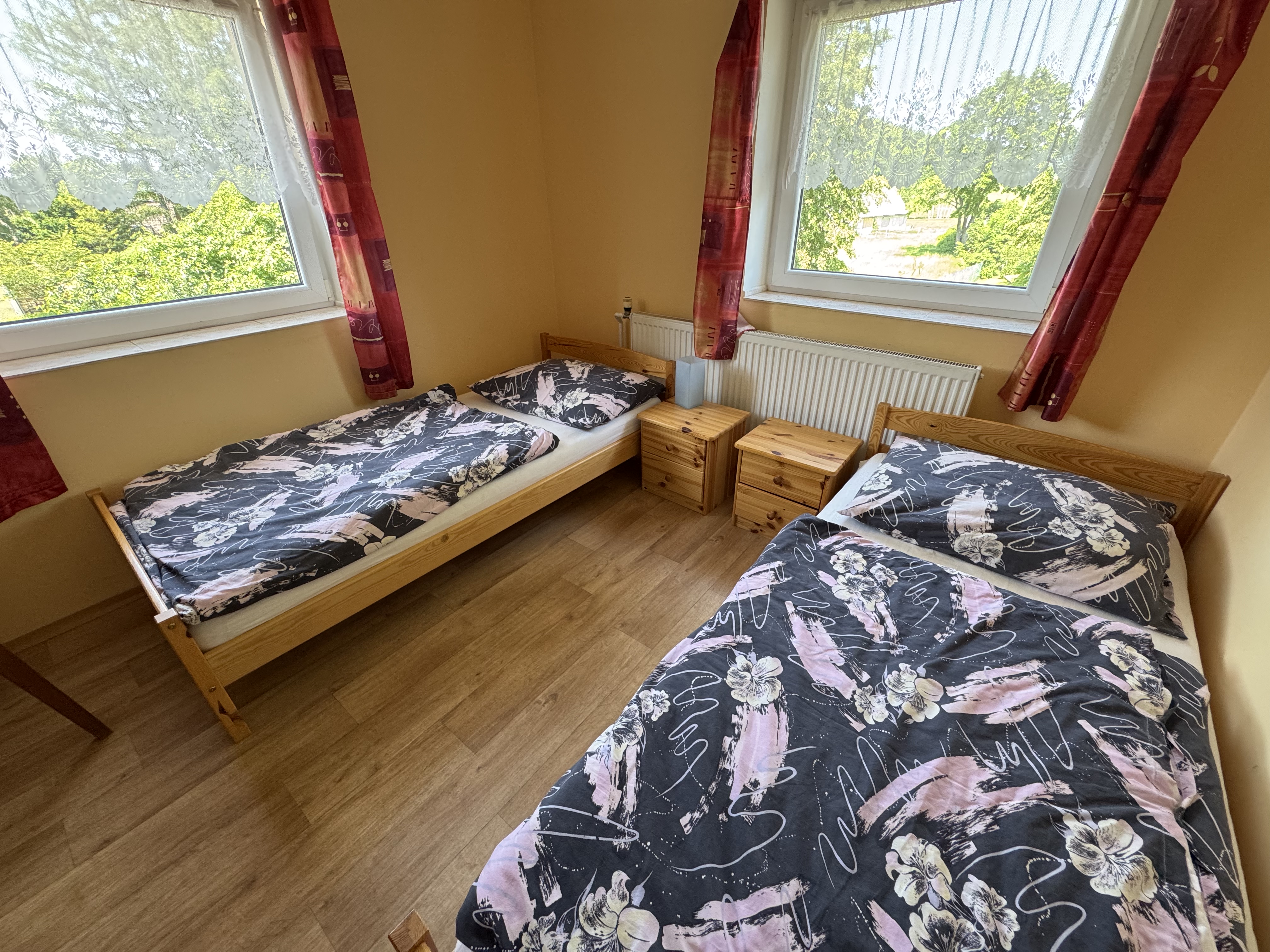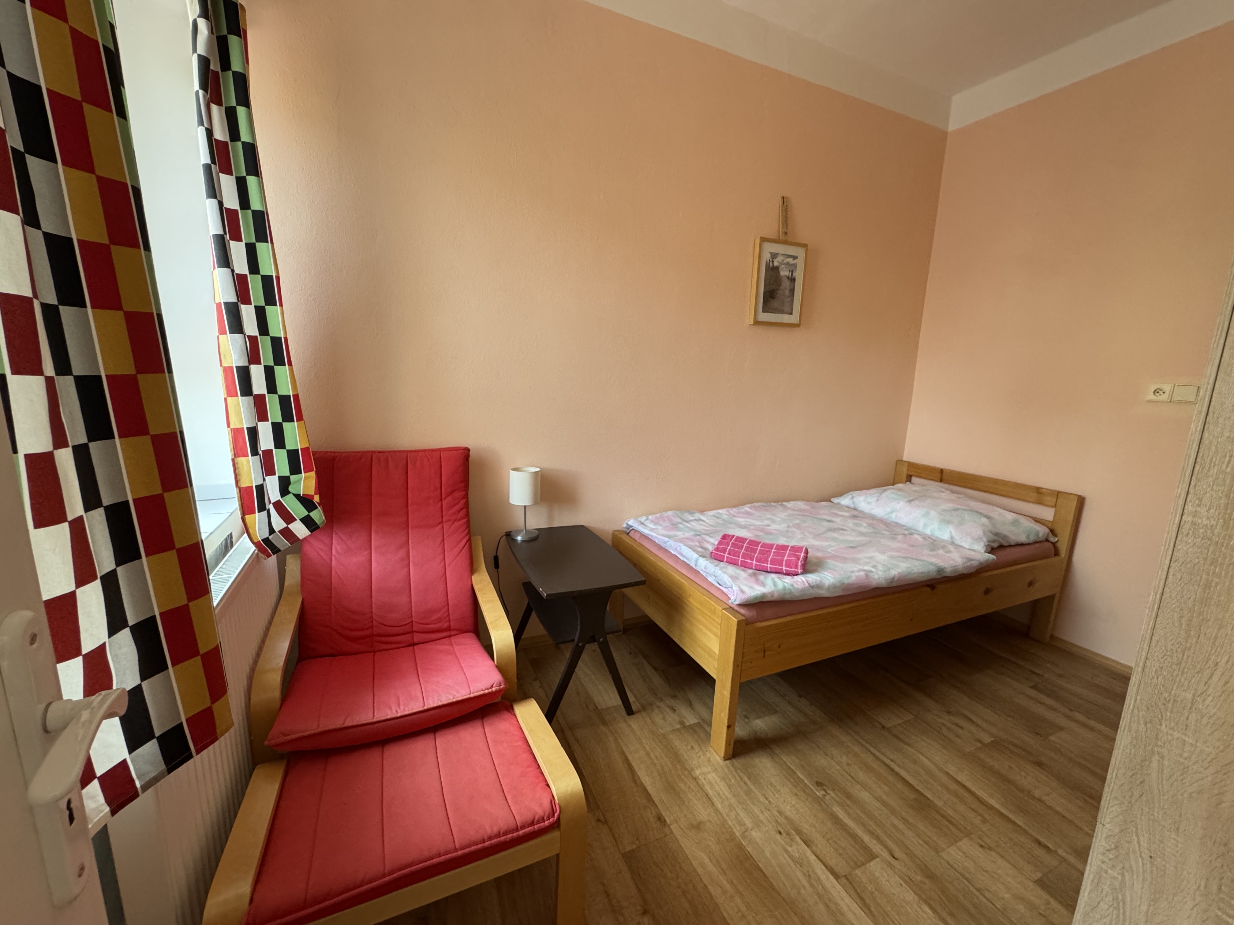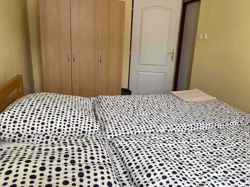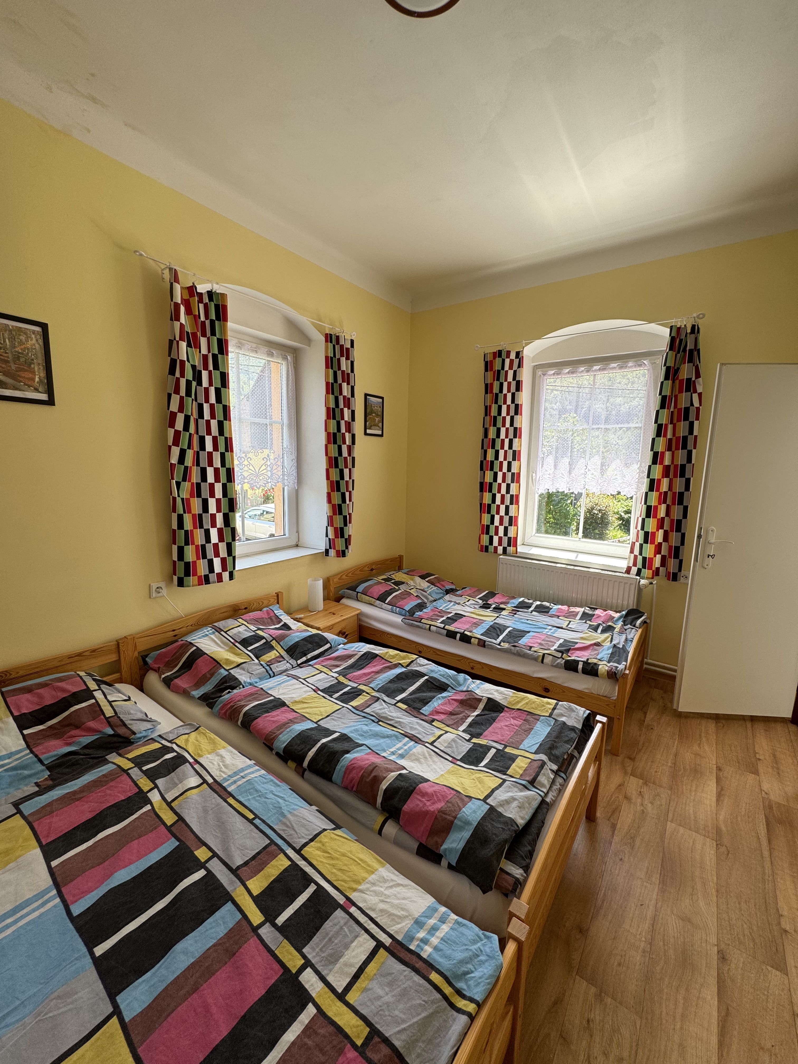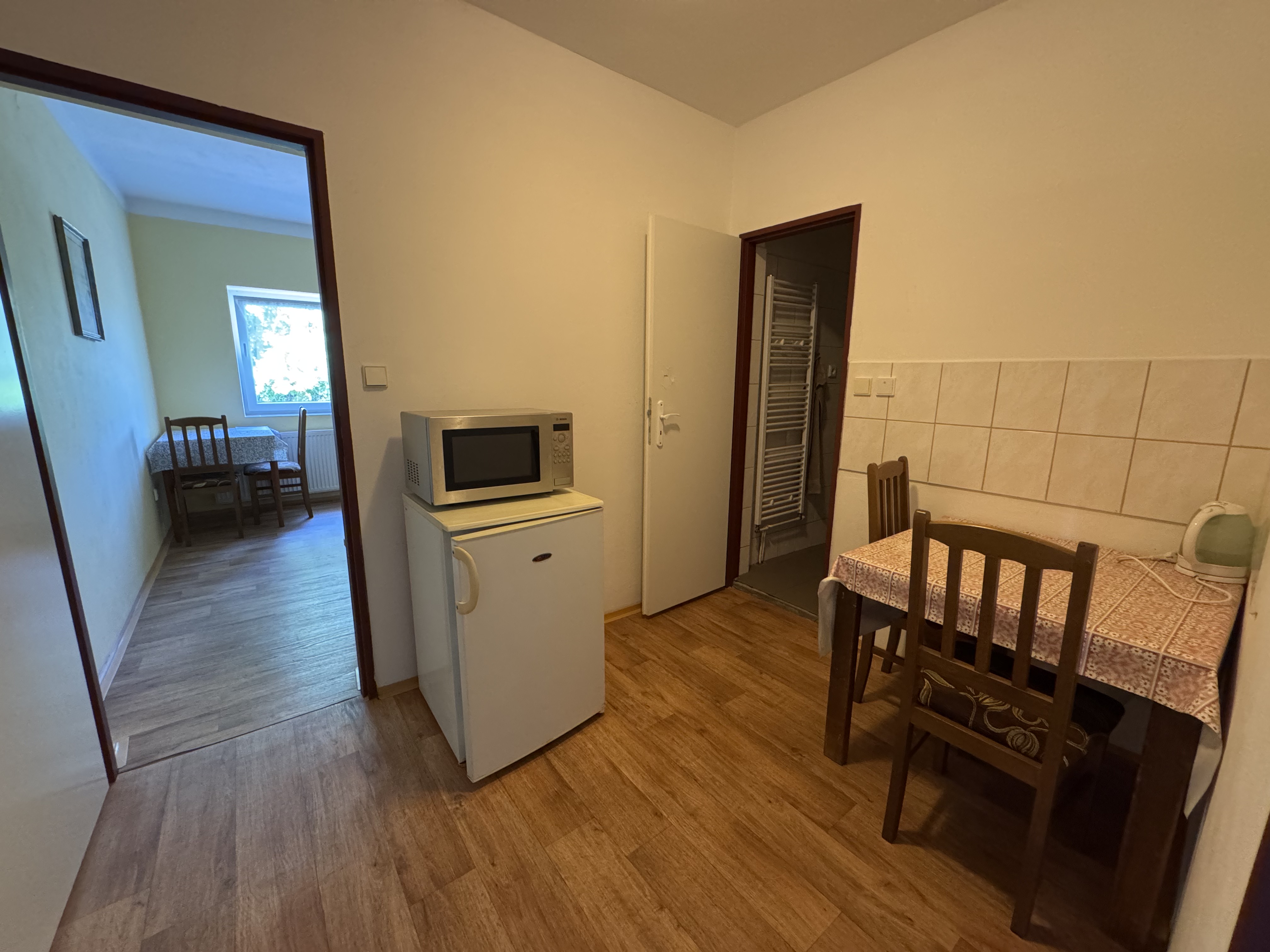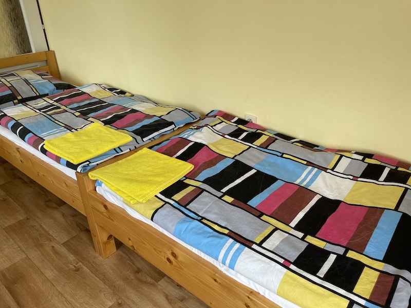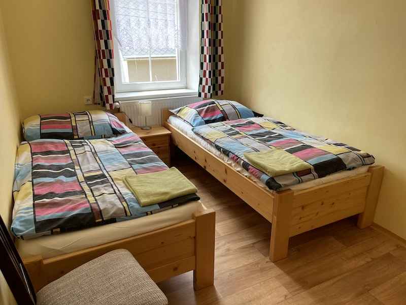 Dvoulůžkový pokoj. Sprchový kout, WC, kuchyňka, skříň. Lednice, varná konvice, elektrický sporák.