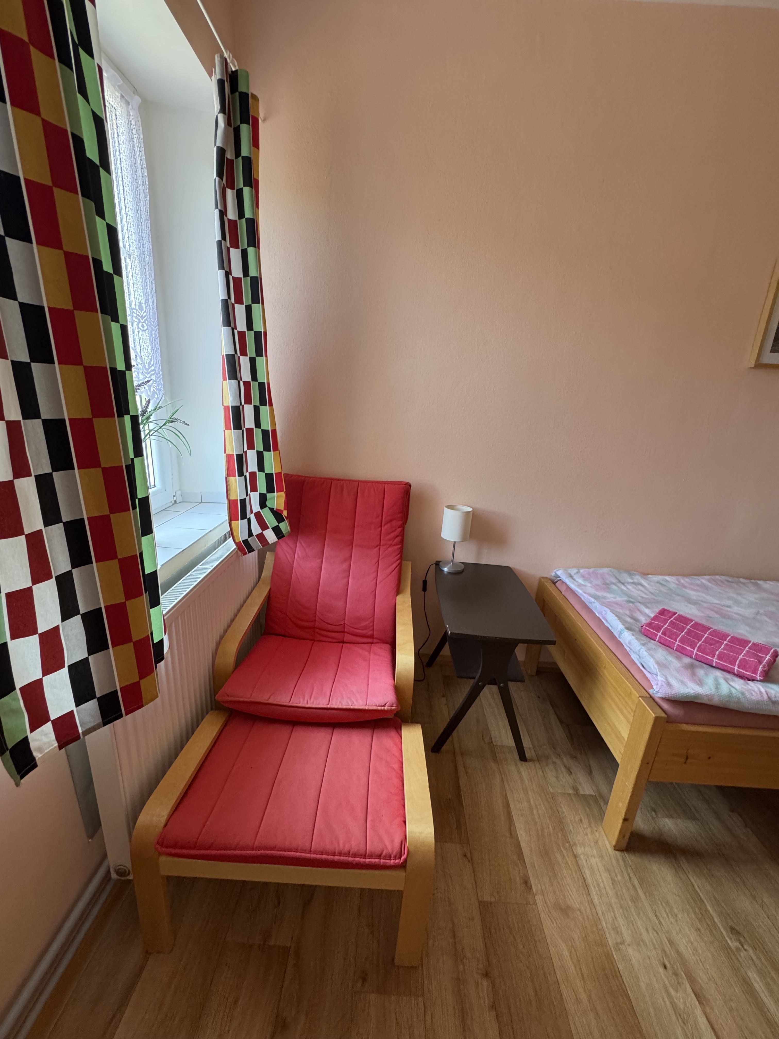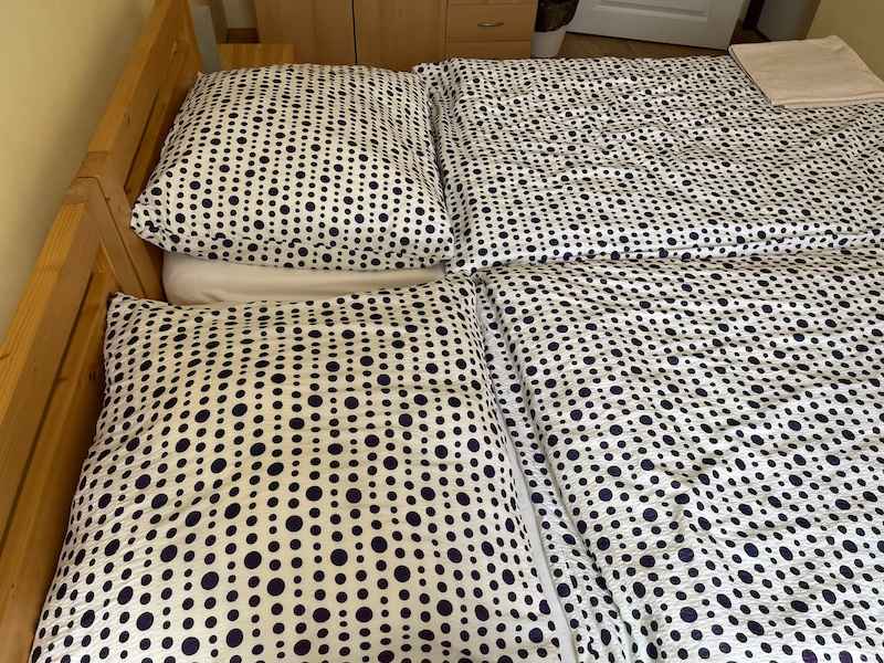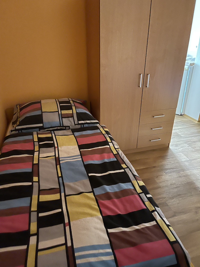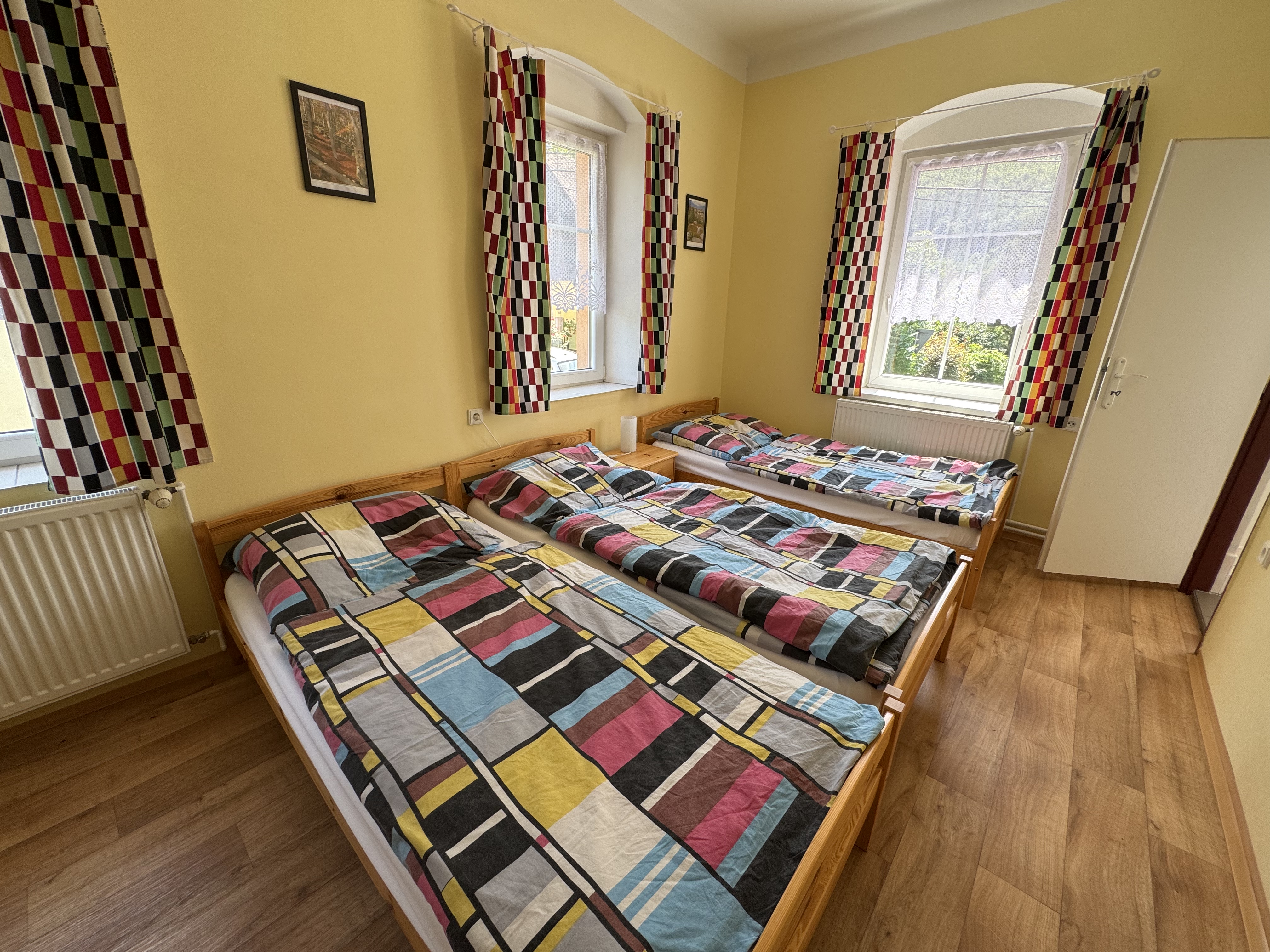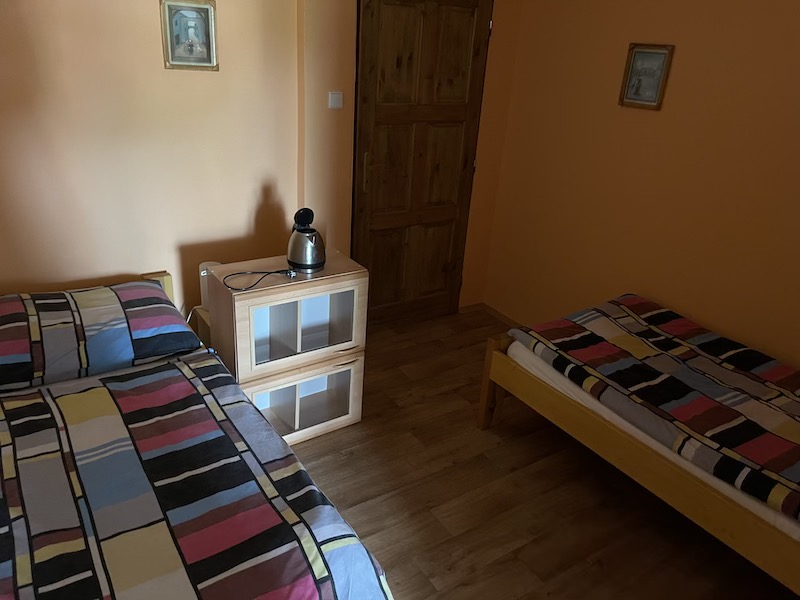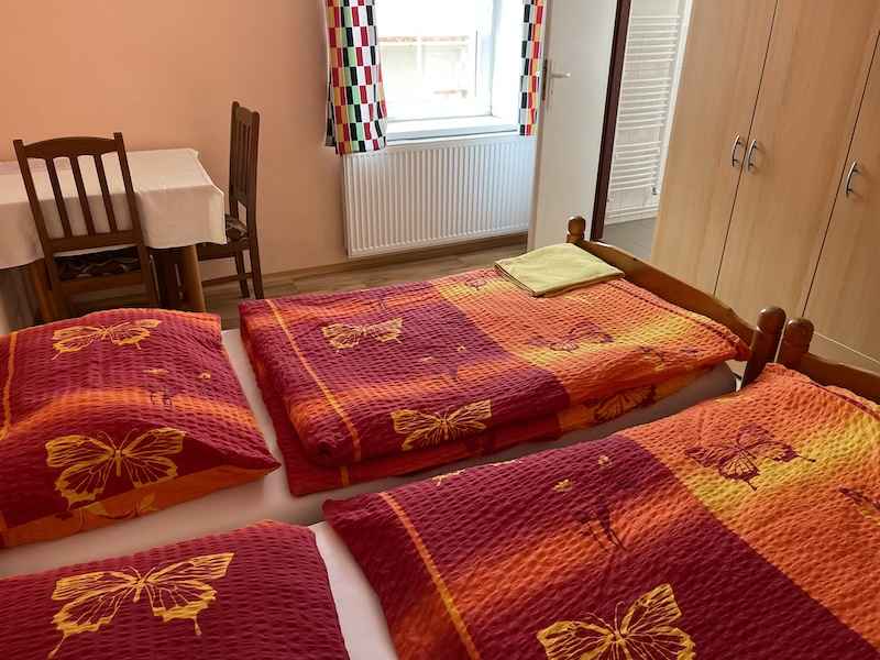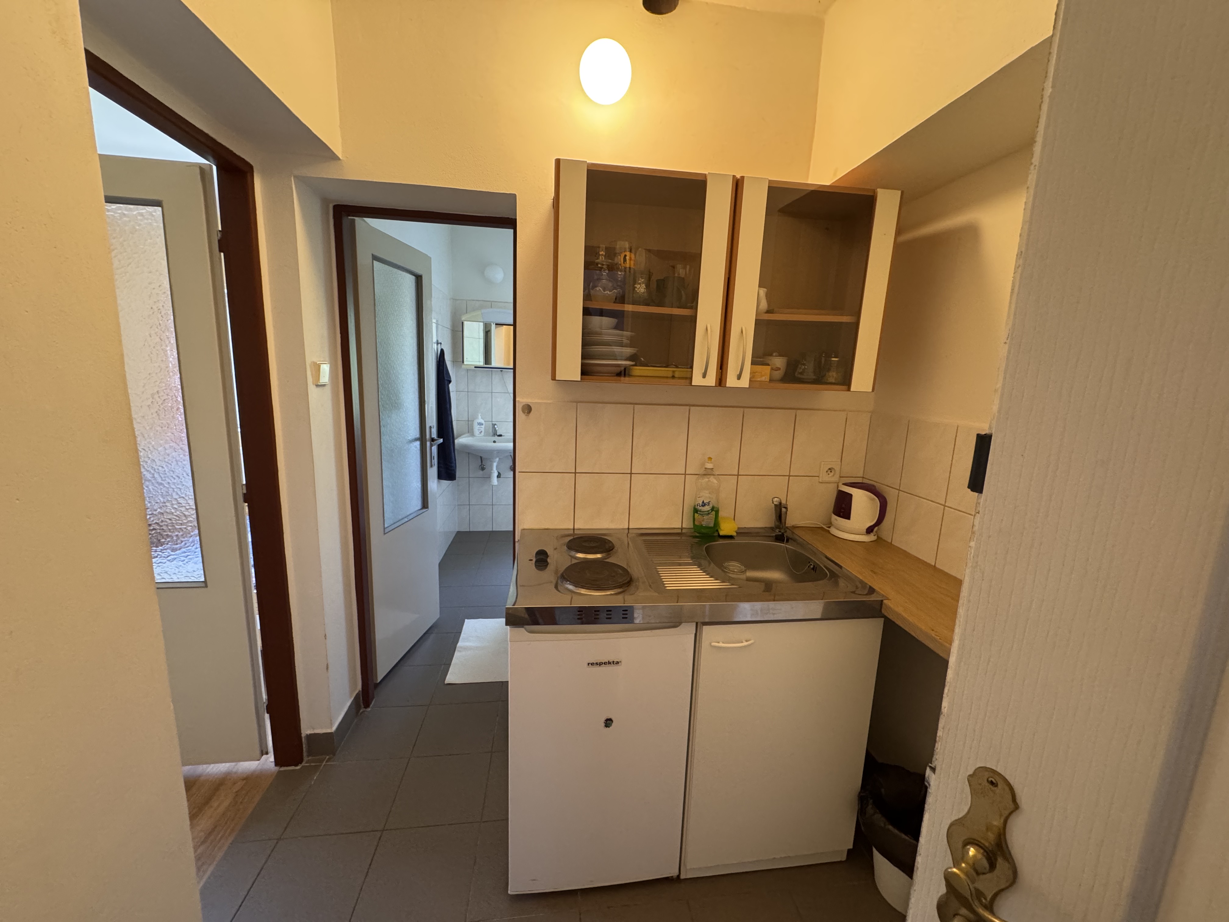 Dvoulůžkový pokoj. Sprchový kout, WC, kuchyňka, skříň. Lednice, varná konvice, elektrický sporák.